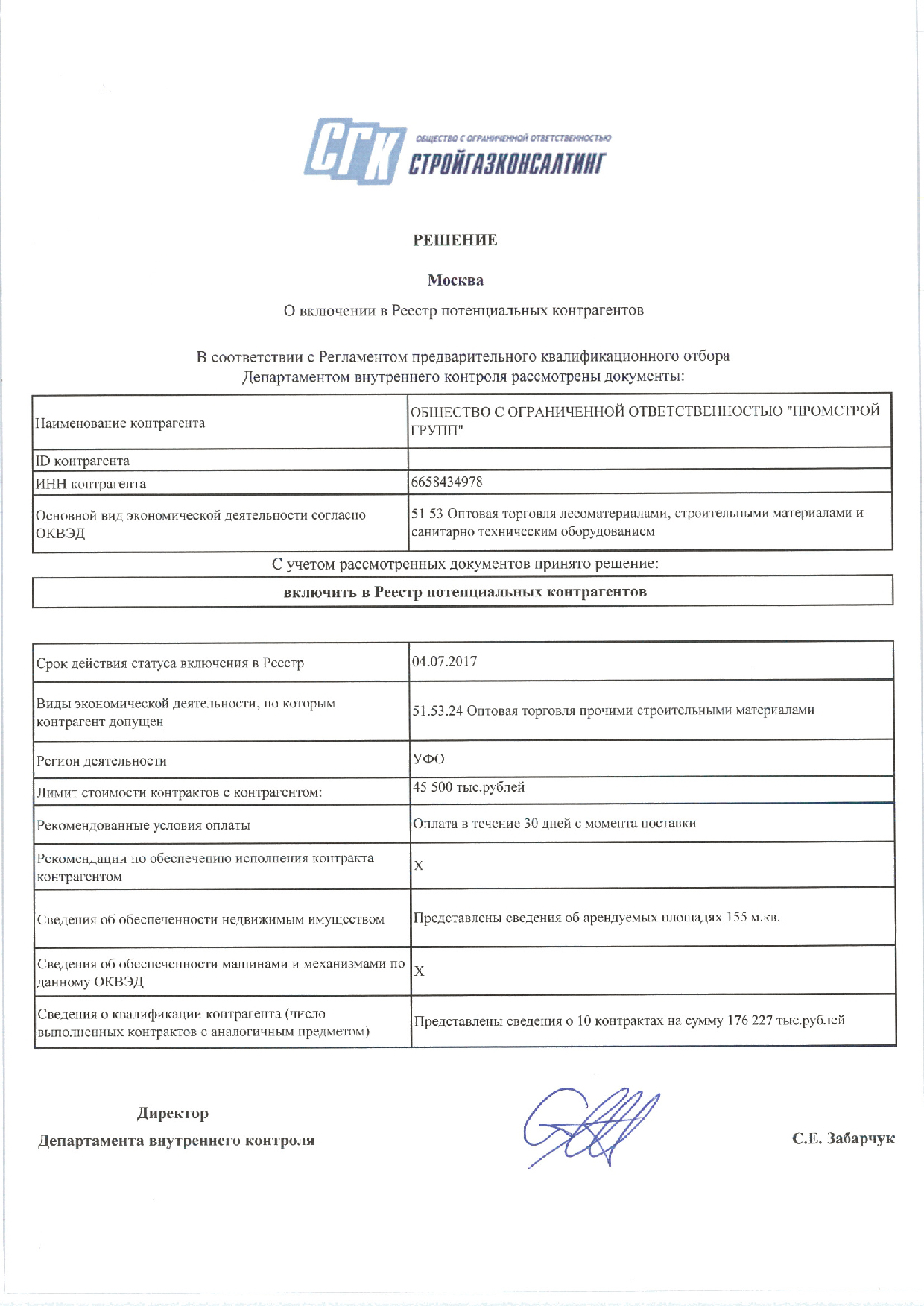 ООО «ПромСтрой Групп» плодотворно сотрудничает с крупными финансовыми организациями и банками на многолетней основе, чтобы иметь возможность неограниченно увеличивать объемы поставляемой продукции на условиях отсрочки платежа.